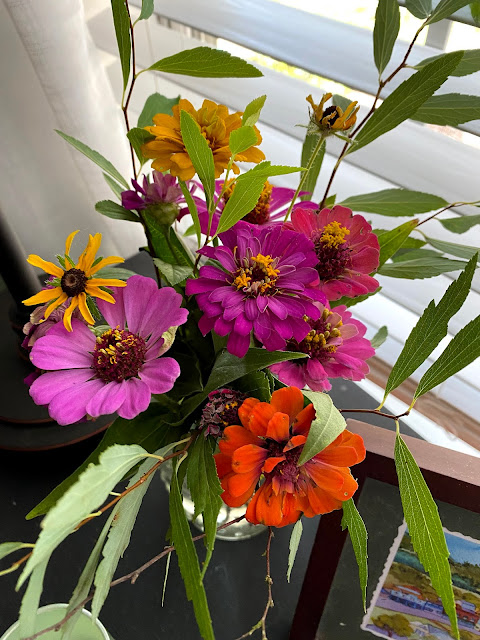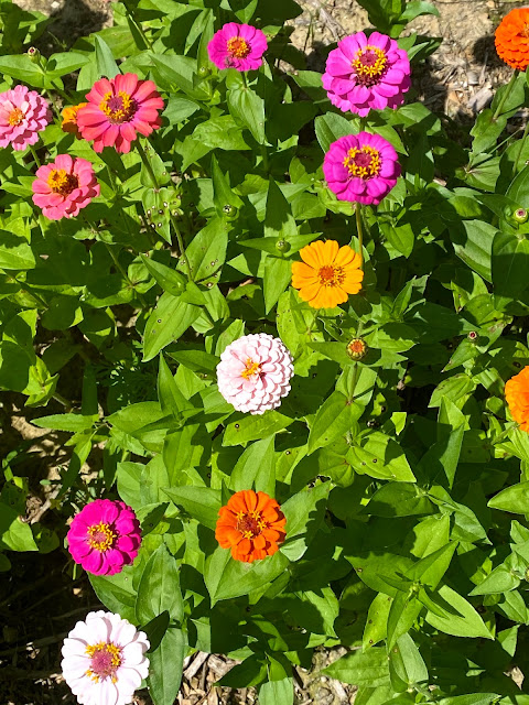 The zinnias are fabulous according to the grasshoppers.