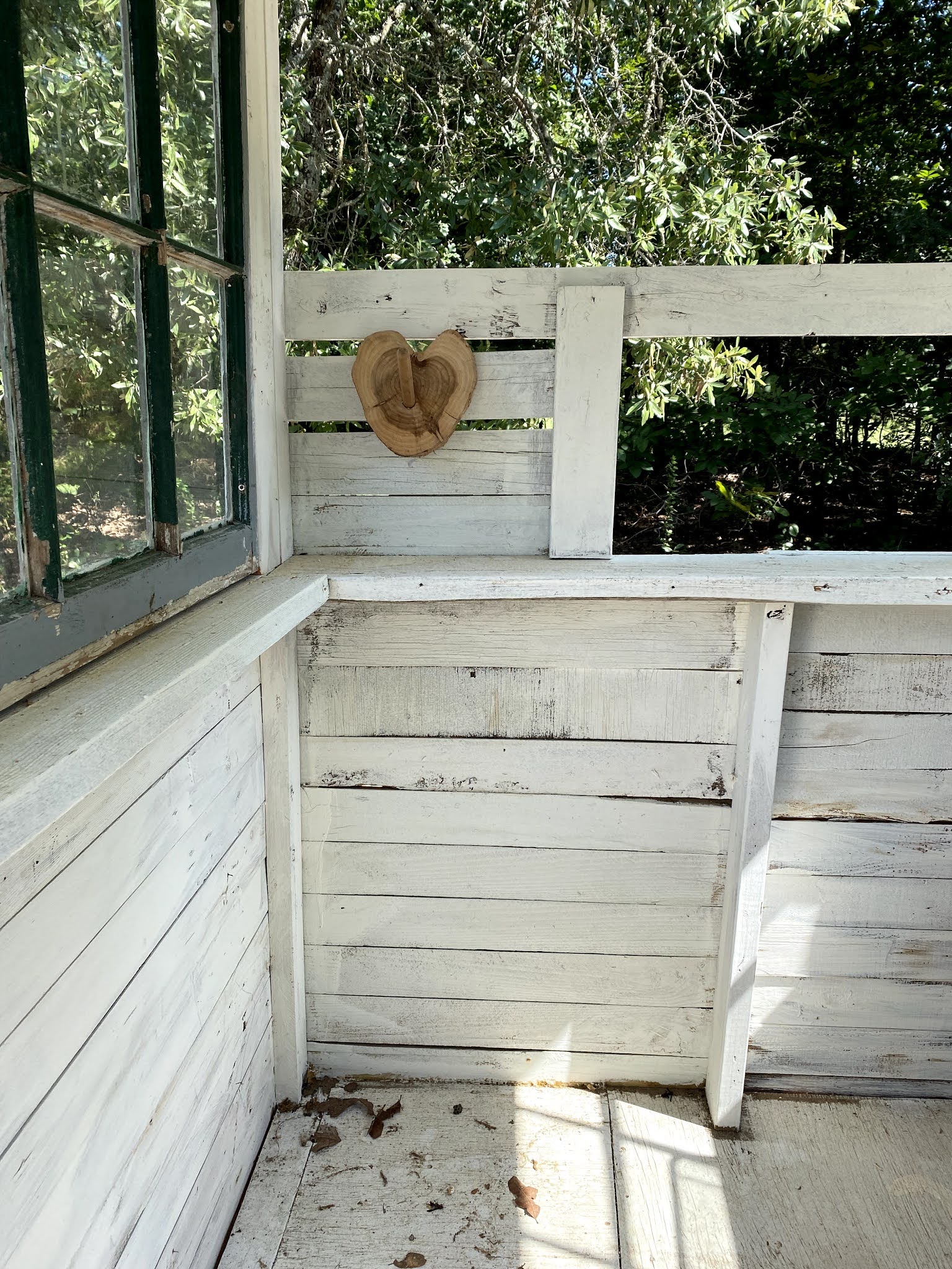 The wooden heart was the toilet paper holder in the cabin. I rescued it from the trash. I just had to save this remnant from the cabin.