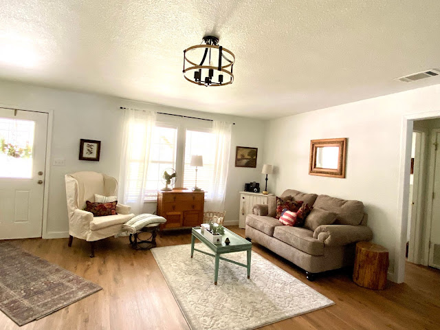 One of my first impressions upon walking into the house was that the fan was way too big. It felt like it could chop off my head and I'm only 5"2' Bill felt the same way but we didn't hate the fan so it stayed while we took care of other stuff.