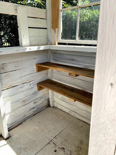 This will be a great little spot for extra garden tools. Here is the original post about its transformation from an ugly deer blind. It's one of my favorite upcycles so far.