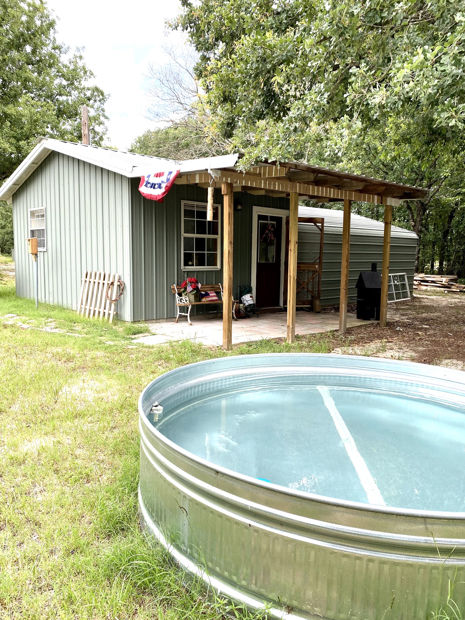 While I was busy in the front, Bill worked on the stock tank pool.