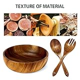 Large capacitythe wooden bowl set includes 1 large wood salad bowl and 1 wood serving spoon and 1 wood serving fork Wood bowl measures 945inch in diameter 315inch in height Wood servers tongs measure 1024inch in length Natural and uniquemade from natural acacia wood the wooden bowl and wood salad tongs is healthy environmentally friendly practical and durable in use