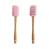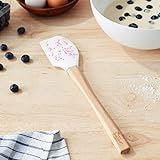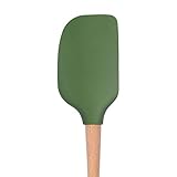 Wooden handle wooden handle adds a rustic look to the modern silicone spatula The ergonomic handle is designed to fit comfortably in hand as you mix fold scrape and spread The wood is tough and durable to tackle your toughest kitchen jobs Tough flexcore silicone head is reinforced with a sturdy nylon core for rigidity and strength The solid core tackles thick batters and hearty doughs while the flexible edges provide just enough give to scrape the edges of the bowl clean