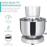 Best Choice Products - Highquality performance handsfree mixing with a powerful 660w motor six speeds and a pulse function for exceptional performance Great for professional or amateur pastry chefs and bakers cuts down prep time and puts less workload on you Planetary mixing action an offset mixing wand rotates in an elliptical pattern to ensure thorough ingredient mixing by moving the attachment across the entire surface of the bowl Clean sturdy and easy to use the splatter guard keeps everything clean and the 63qt highcapacity bowl comes with an ergonomic handle Five suction cups keep the bowl steady and a tilthead feature makes it easy to add ingredients