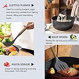 Umite Chef - Heatresistant stainresistant avoid the melt the silicone cooking utensils can withstand high temperatures up to 446f230c Allaround silicone added to the softness no longer worry food will stick your cookware or produce odd chemical smells Silicone head protect your pansExtend the life of all your kitchen pansThey are scratch resistant unlike plastic and rubber utensils that will easily melt or metal kitchen utensils harm your nonstick pots Food grade safe silicone made of foodgrade silicone bpafree very safe to use in any type of food And it will probably last longer than the other plastic kitchen utensils This silicone cooking utensils does not react with food or beverages or produce any hazardous fumes you dont have to worry about the health of your families will not retain odors or colors when you use it for stirring tomatobased food products