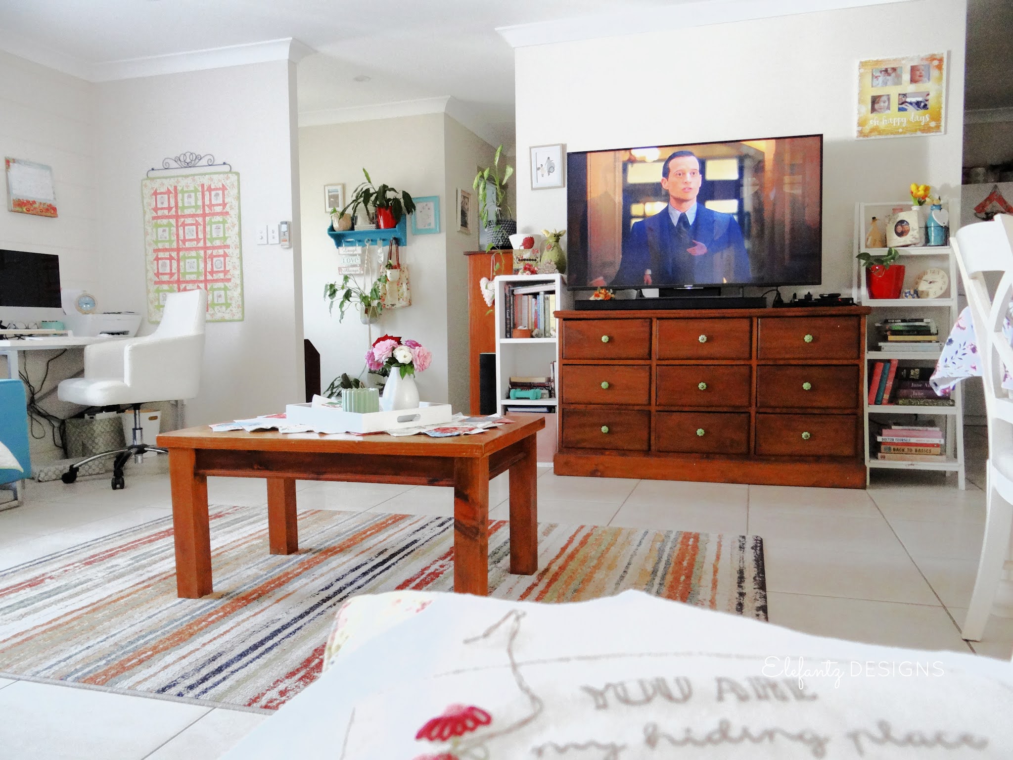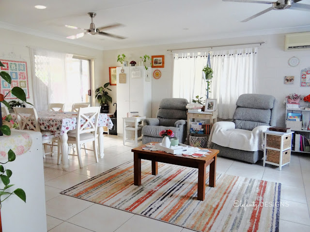 Yesterday, as I mentioned earlier, began with a big morning of rearranging the living/dining area. Due to our east facing home being hit with the scorching morning sun I always change the layout of furniture to suit the season.