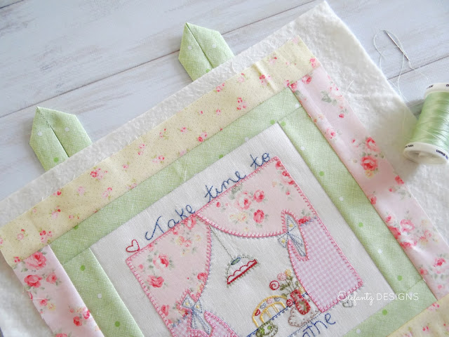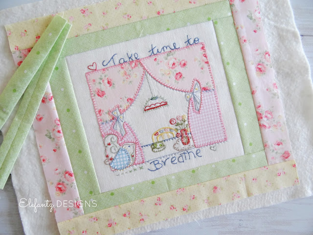Beginning with the "Take Time to Breathe" block, my idea was to finish it as a mini quilt for the sewing room or a pillow for the bedroom. A few borders later and it was ready for hand quilting...