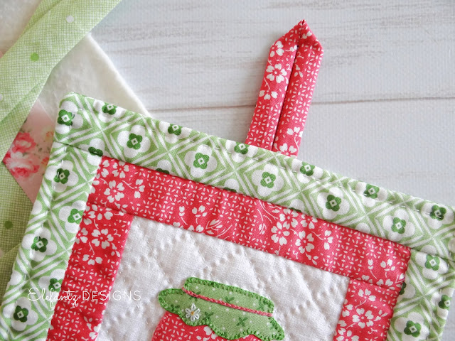 After my post last week with the free Jam Jar pot holder pattern I received a number of requests to show how I made the little hanging loop, so yesterday as I was beginning work on a UFO finish for November it occurred to me that I could photograph the steps to make those loops for you, because they'd be appearing again in my UFO anyhow.