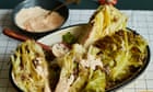This is an impressive vegetarian centrepiece inspired by a recipe in an old book called Moldovan Cuisine, in which the cabbage is braised in stock. I prefer steaming cabbages, especially if using the tender sweetheart (AKA pointed) variety. If your cabbage is very big, you may need to steam it for a little longer than the recipe states: use your instinct here. The filling can be made in advance and frozen, then thawed before being stuffed into the cabbage.