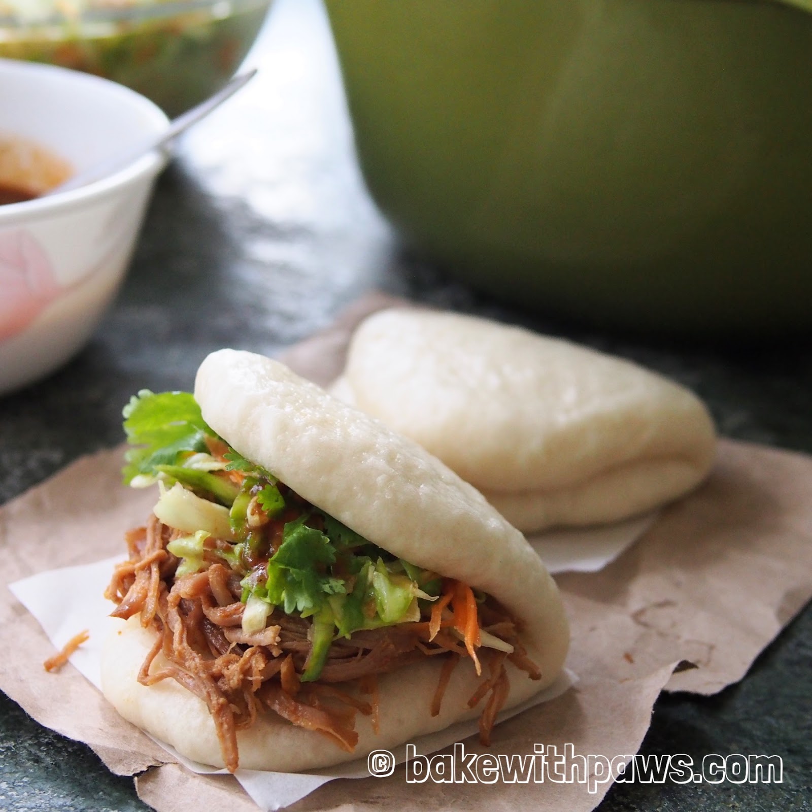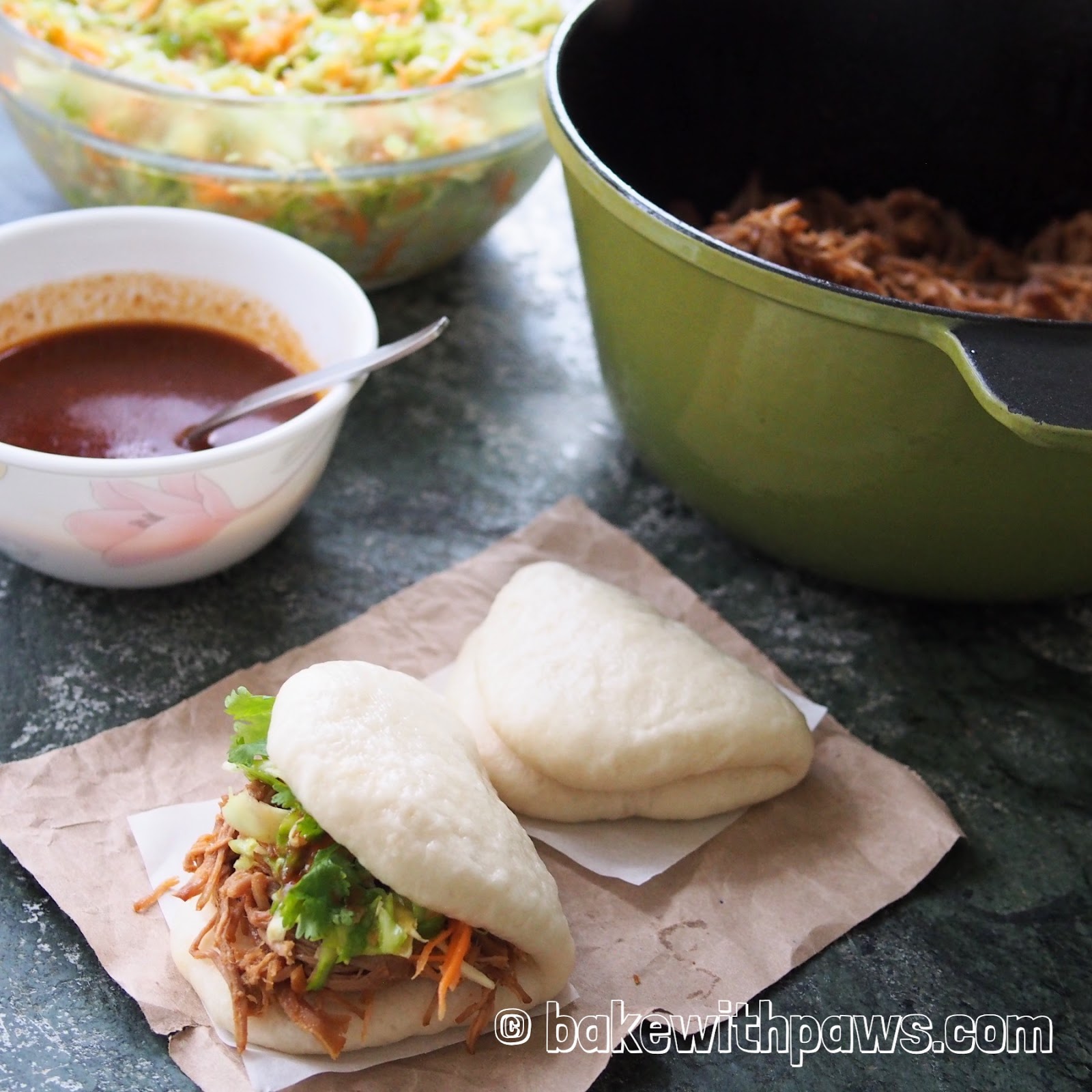 This is another one inspired by my London trip recently. We tried the pulled pork wrap in Borough Market and it was delicious! I made some mantou to wrap it with instead of a pitta.