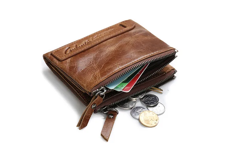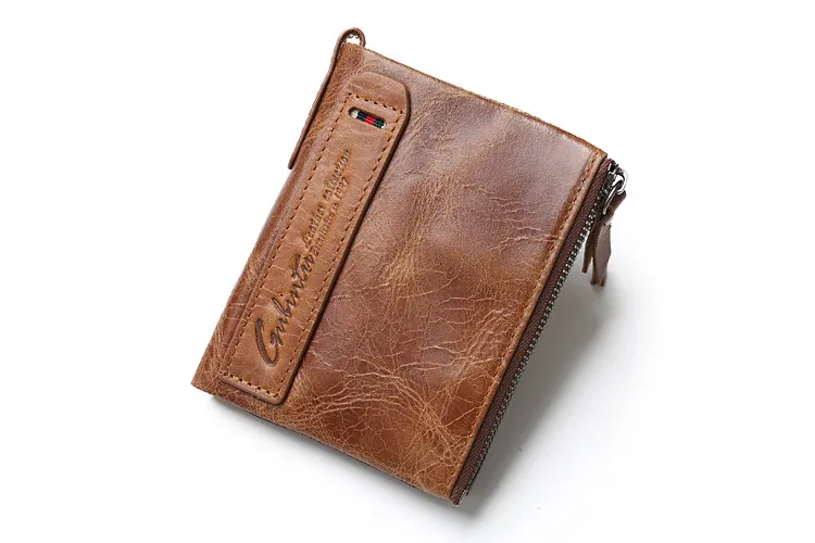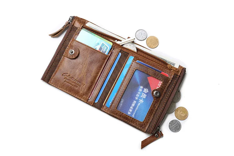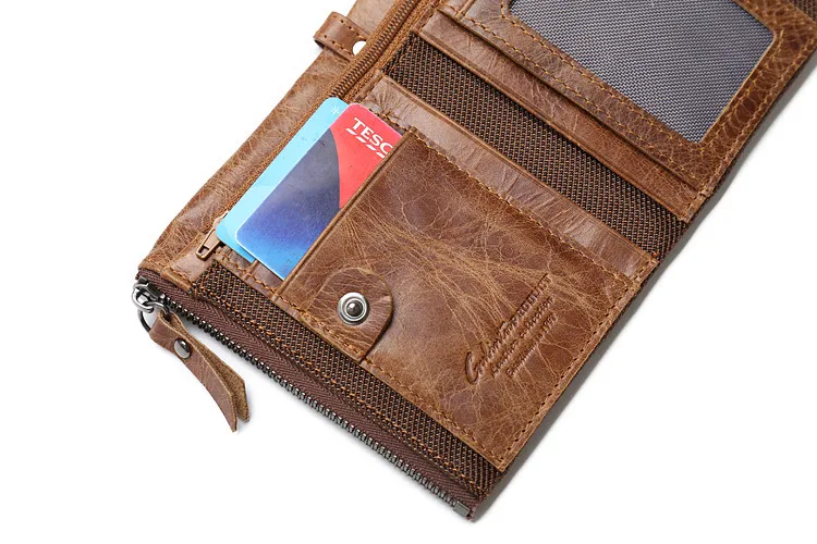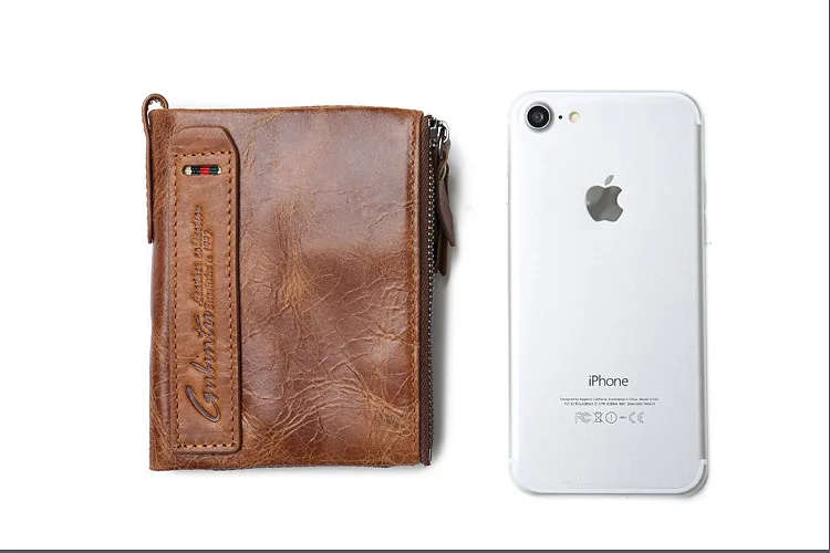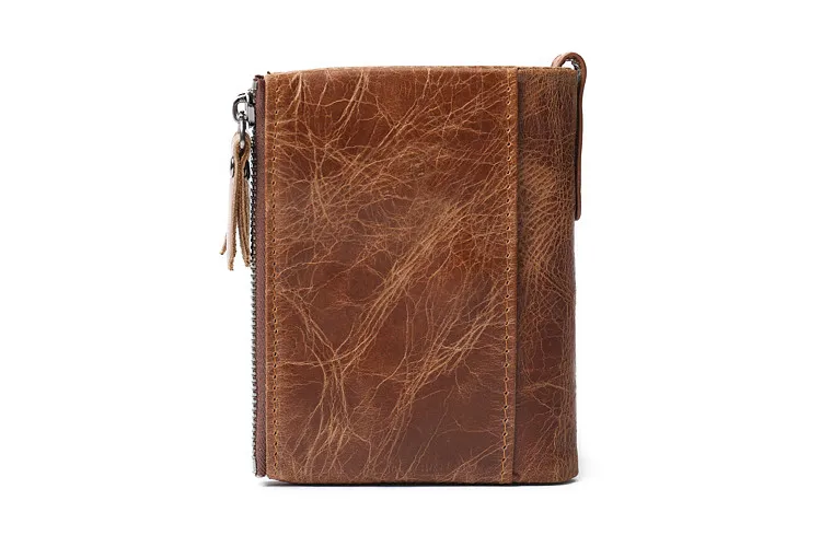 Genuine Crazy Horse Leather Men Wallet Short Coin Purse