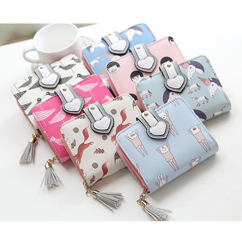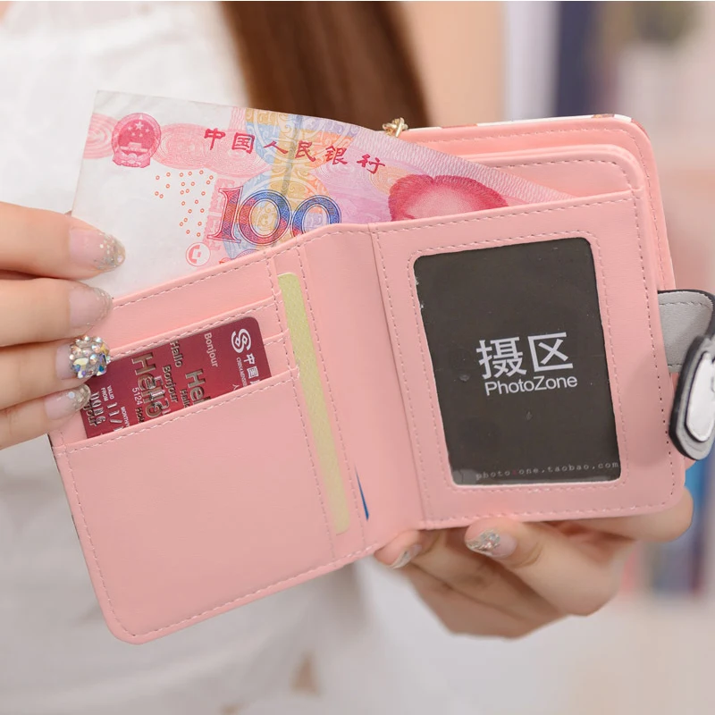 2017 Korean Cute Anime Cat Leather Trifold Hasp Mini Wallet Women Small Clutch Female Purse Brand Coin Card Holder Dollar Price