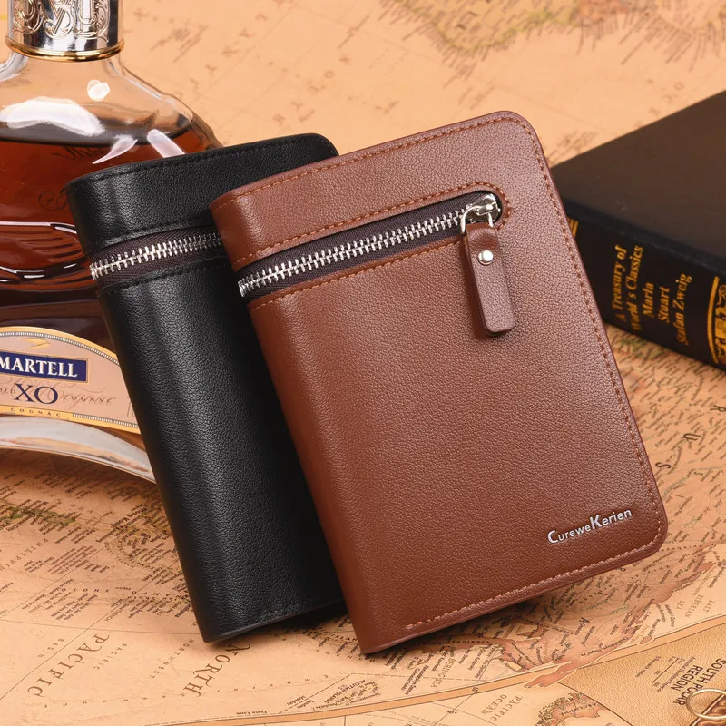 2016 men's walle Europe and the United States fashion business men shor leather zipper purse free shipping