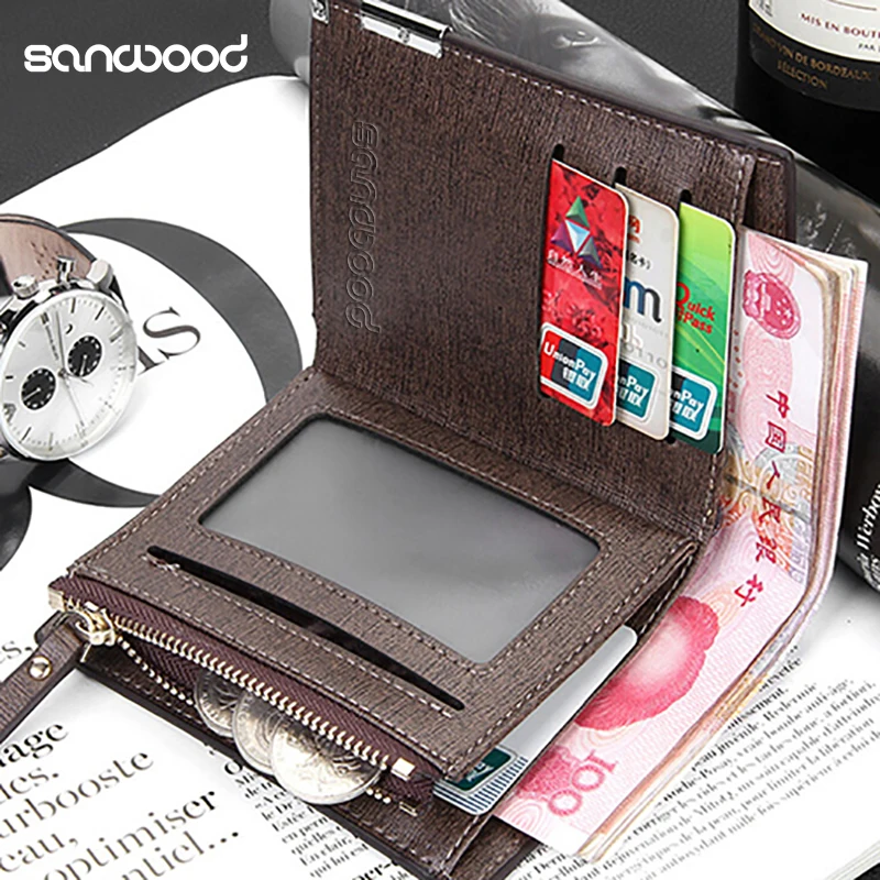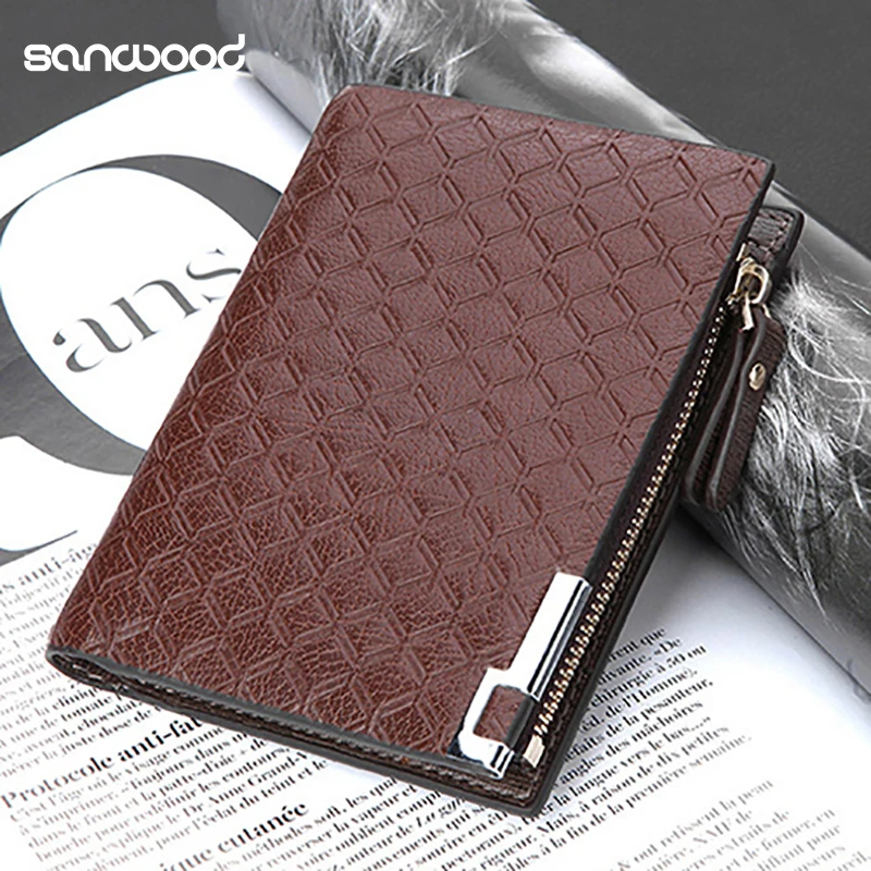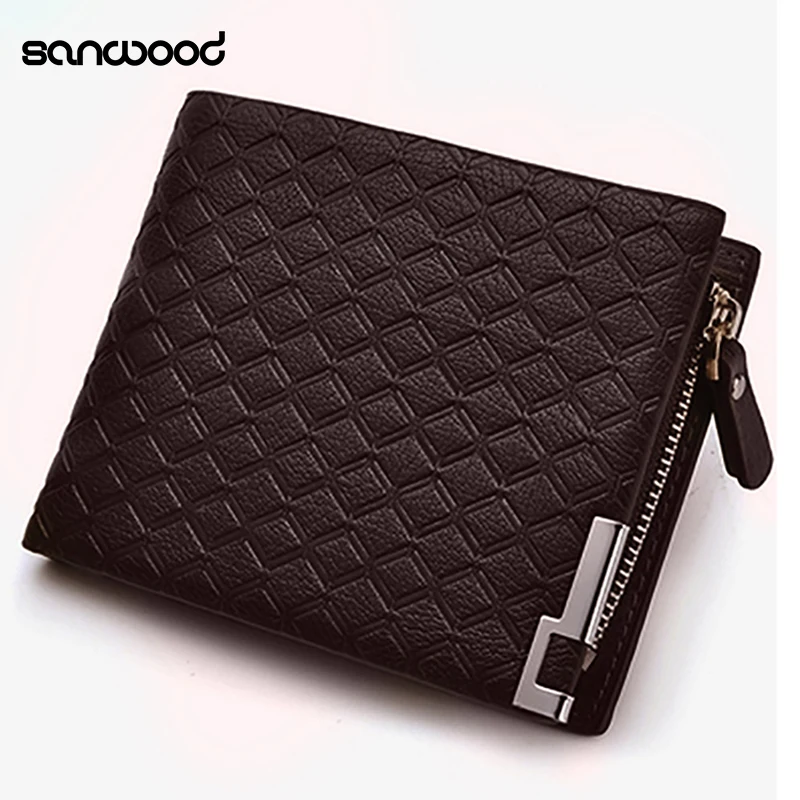 2016 NewMen's Shor Faux Leather Tartan Pattern Zipper Walle Card Money Clutch BillfoldDiscoun Carteira 9XYK