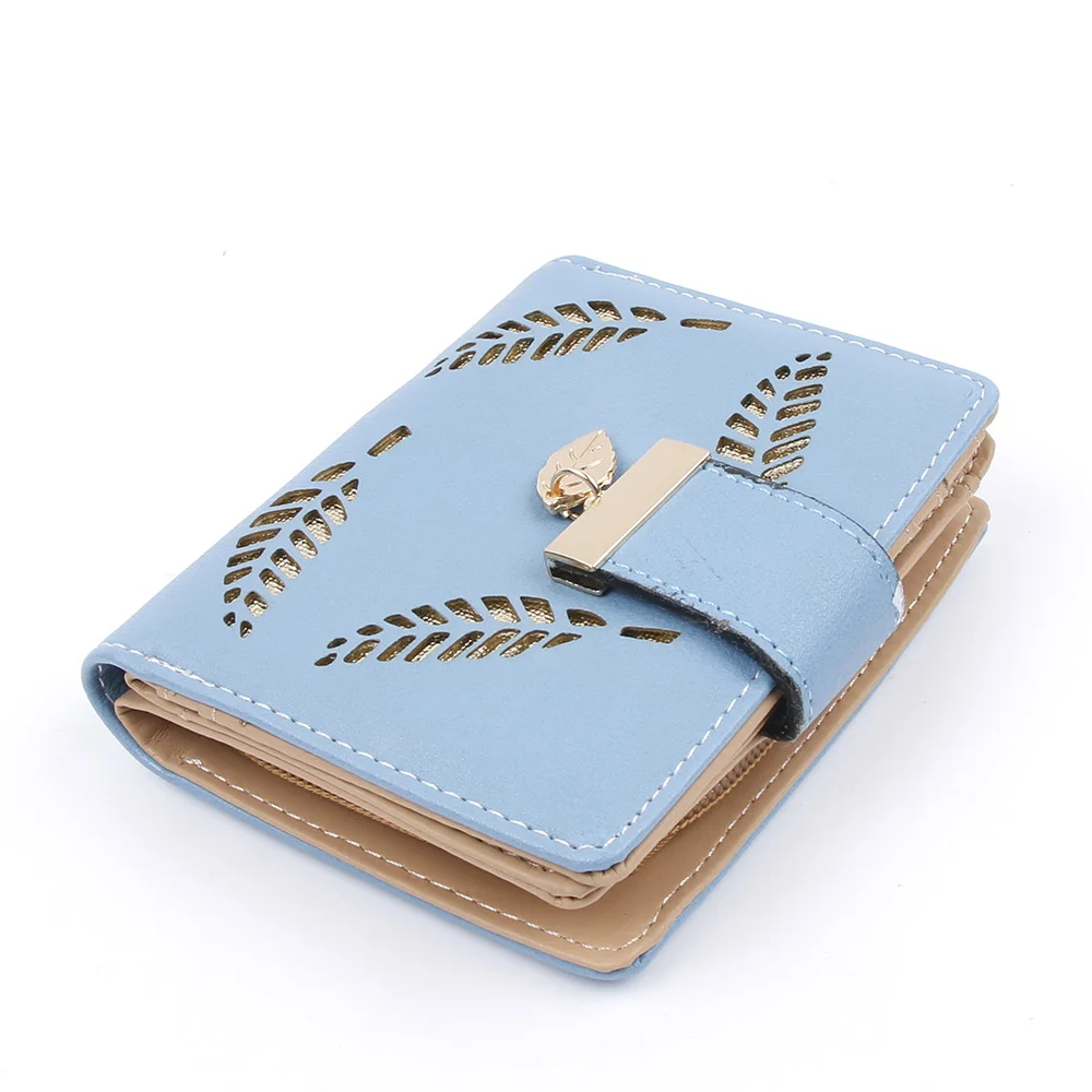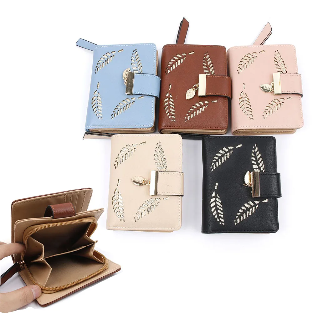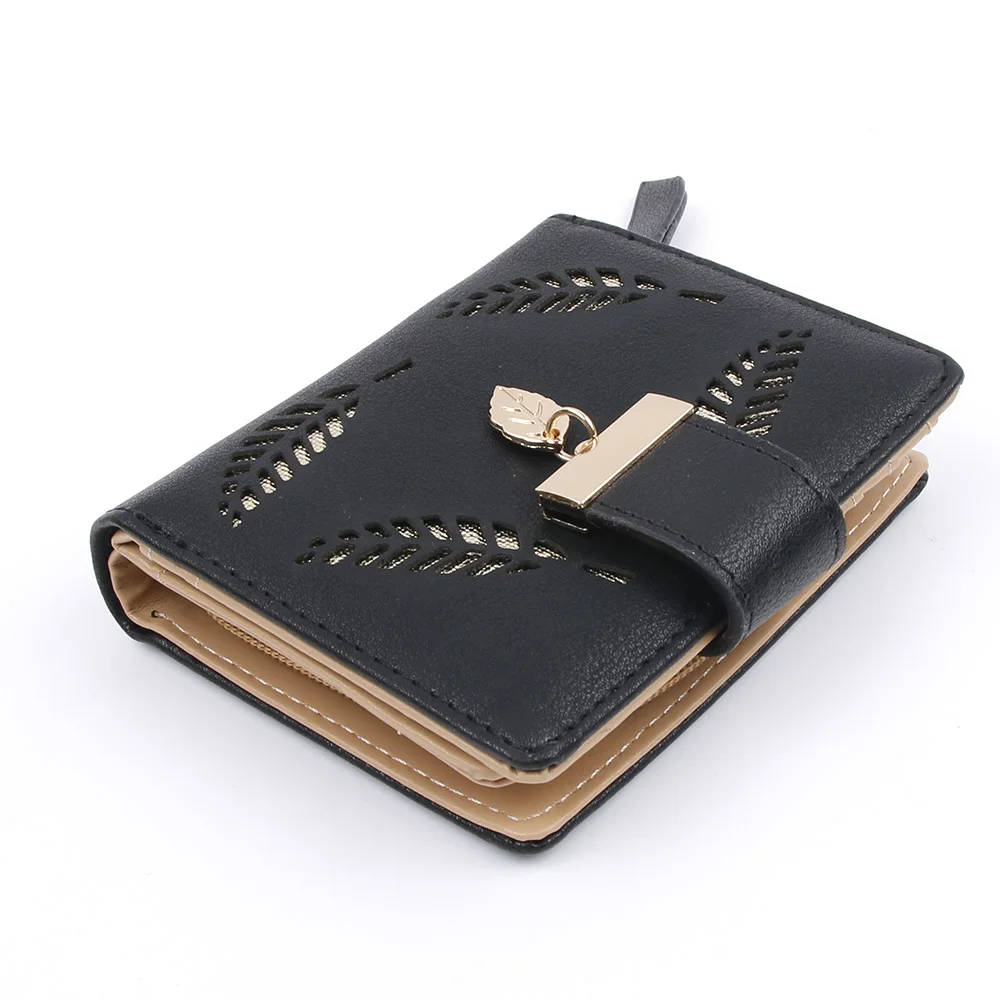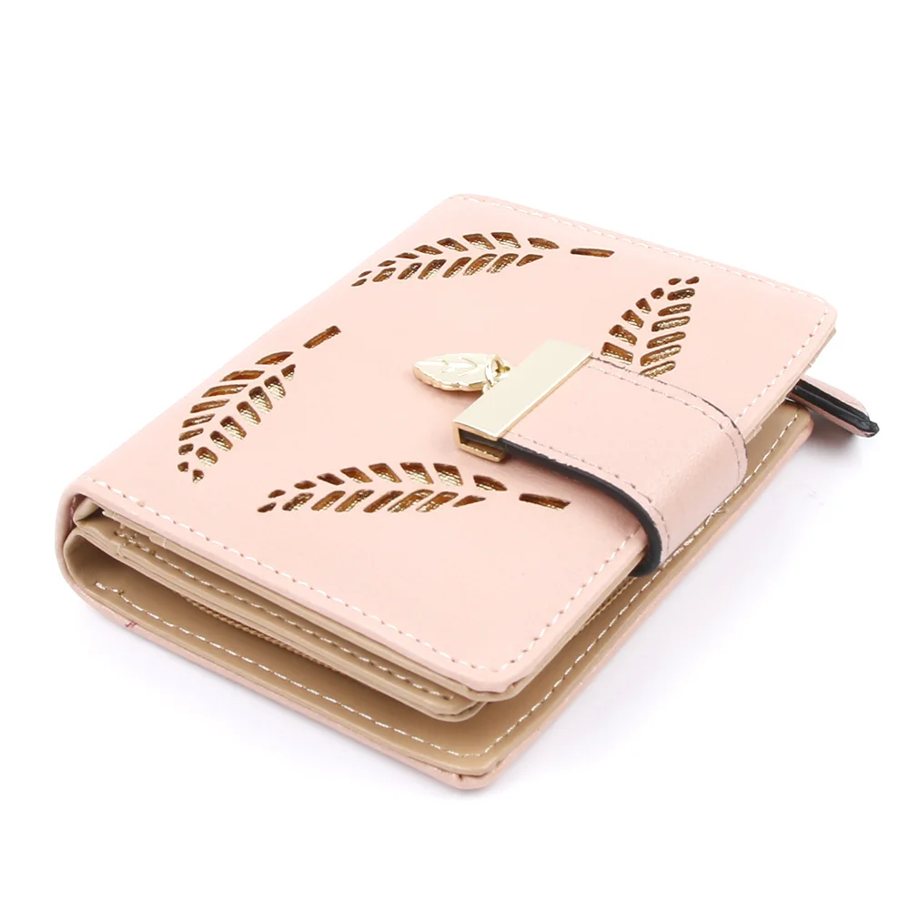 2017 Design Women's Purse Zipper Leather Ladies Luxury Brand Small Female Hollow Leaves for credit cards