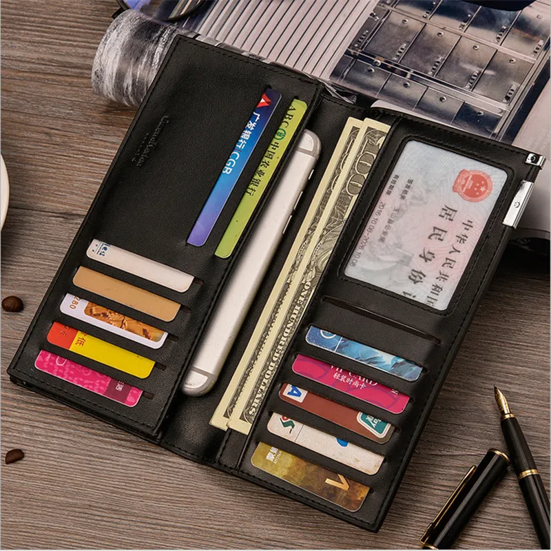 2017 New Fashion men Wallets Drawstring Nubuck Leather Zipper Walle men Long Design Purse Two Fold More Color Clutch