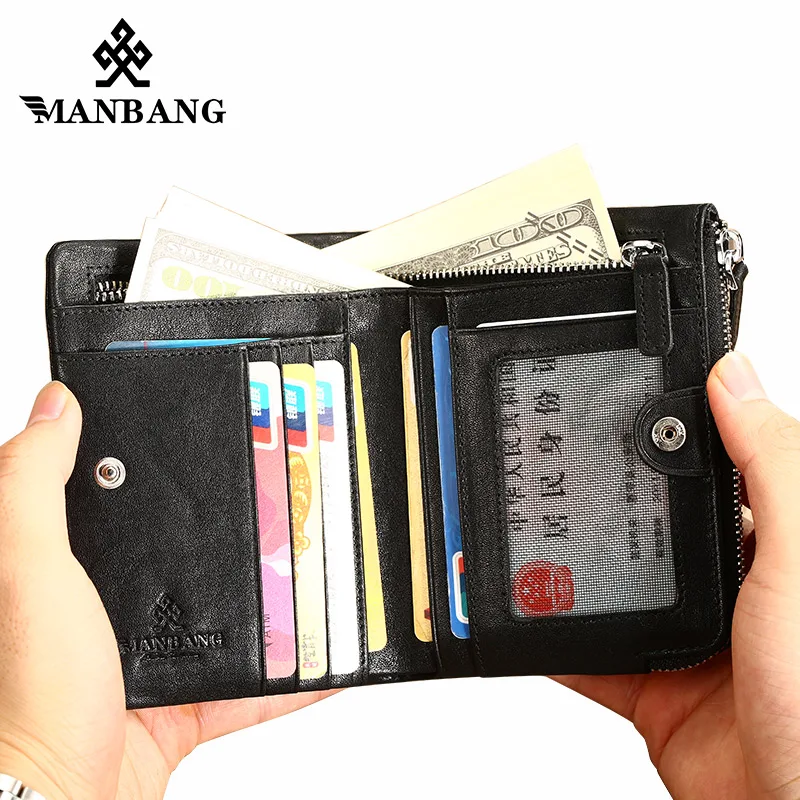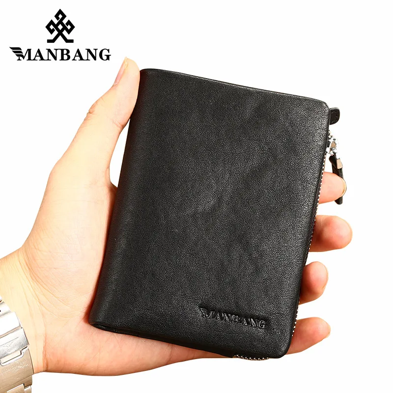 2017 Autumn New Arrival Genuine Leather Men's Walle For Men Small Zipper Organizer Wallets Cash Carteira For Rfid