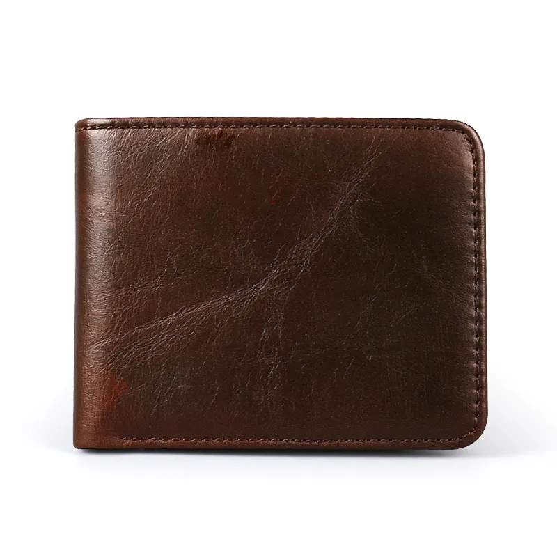2017 new walle portable retro casual 100% genuine cow Oil wax leather men shor wallets coin dollar male small purse