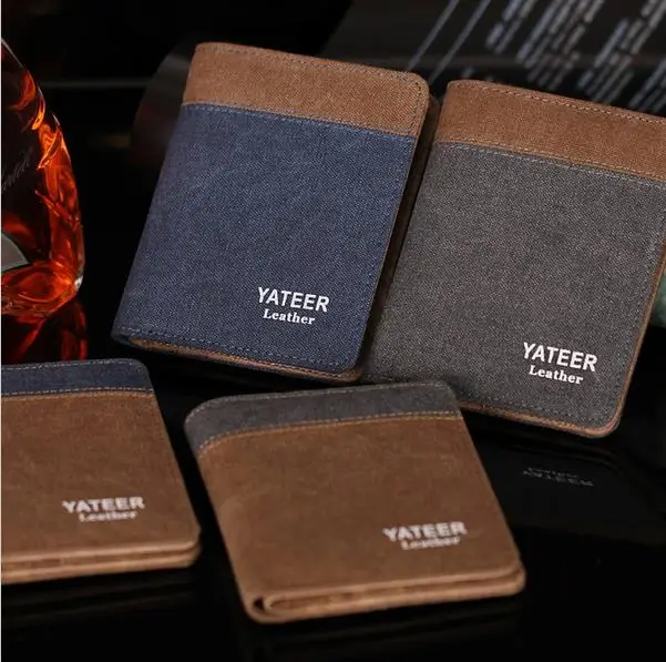 2017 designer luxury brand Canvas menwallets Solid leather fashion walle male ultra thin highquality purses free shiping